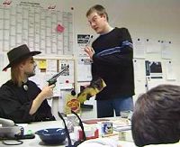 Job bei RSGS: | Heiko "Tach, Post" Häusler spielte in vier Episoden zwischen Episode 5 und 9 aus der ersten RSGS-Staffel die Inkarnation des stressgeplagten Postboten und musste Paketbomben und andere Freundlichkeiten überbringen, bis er von Seargent Steidle einen fulminanten Abgang spendiert bekam - geradewegs in den Weltraum. |