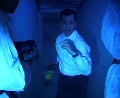 ErwähnenswertesIn dieser Episode taucht Christian Schmidt das erste Mal auf. Captain Langer scheint ab dieser Episode seine Brille verlegt zu haben (oder trägt er einfach nur Kontaktlinsen?) GoofsMartin ist als Mensch übrigens größer als als Monster.KommentareMartin über Gunnars "Schleimdusche": "Und wieder bewahrheitet sich [...]: Die neuen Mitarbeiter müssen erstmal Rollen spielen, die nicht ganz so toll sind. Teilweise sogar ziemlich schleimig." - Toni: "Ja, Gunnar hat uns ein bisschen Leid getan, aber noch mehr sollten einem die Leute Leid tun, die das Ganze hinterher aufwischen mussten." Toni: "Und jetzt wird's richtig peinlich. Ich hab nicht aufgepasst. Jörg steigt aus dem fahrenden Aufzug aus." Martin: "Also ich hatte an dem Tag ungefähr 40 Grad Fieber, steckte in dieser engen Latexmaske und Toni hat mir dann auch noch Rauch ins Gesicht geblasen." Toni: "Ich glaube, insgesamt waren das so ziemlich die anstrengendsten Dreharbeiten - für alle Beteiligten - die wir je hatten." |