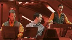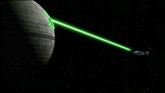 KurzbeschreibungDie GameStar flüchtet vor dem Todesstern. Man sammelt Vorschläge, wie man den Verfolgern entkommen könnte...InhaltsangabeDer Imperator hat die GameStar endlich erwischt: "Endlich habe ich Euch. Darauf habe ich fünf Jahre gewartet." Ein einziger Schuss und die GameStar ist Geschichte. Die nächste Szene, fünf Jahre früher. Die GameStar wird von der imperialen Flotte verfolgt. Der Captain sammelt Vorschläge zur Rettung der GameStar. Vernünftige gibt es allerdings keine. Und auf den Befehl "Wir brauchen mehr Saft!" werden ihm nur zwei Flaschen bester Orangen- (oder Apfelsinen- (?)) Saft hingehalten. Das Imperium kommt immer näher. Der erste Offizier drängt den Captain, ein Opfer zu wagen und das Spielearchiv abzusprengen. Schweren Herzens trennt man sich davon. Das Archiv kollidiert mit dem Todesstern, was den Imperator nur noch rasender macht. ReviewMit Beginn der dritten Staffel zeichnen sich einige Neuerungen ab. Das GameStar-Interieur wird ab nun (mehr oder weniger) komplett selbst gerendert, es gibt mehr Spezialeffekte (vor allem in den Weltraumszenen) und der Captain sagt zum ersten Mal seinen legendären Satz: "Oh Gott, wir werden alle sterben!" Die 16. Episode selbst zeichnet sich zwar nicht durch einen besonders ereignisreichen und spannungsgeladenen Plot aus, dafür aber durch einige witzige Momente. Zum Beispiel der Saftgag, der beim Dreh übrigens spontan entstand (und somit auch der Satz "Oh Gott, wir werden alle sterben!"). Den Drehbuchautoren Christian Schmidt und Gunnar Lott sagte dieser improvisierte Gag anfangs allerdings nicht so zu (kein Wunder, wer will auch schon sein Drehbuch "verunstaltet" haben?). Lediglich die Anfangsszene, in der die GameStar fünf Jahre in der Zukunft zerstört wird, wirkt nicht so ganz schlüssig, zumal darauf auch nie wieder zurückgegriffen wird.
