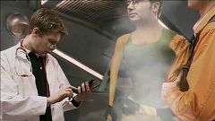 ErwähnenswertesDiese Episode bekam nachträglich den Titel "Im Bann des Bösen". Der arme Todesstern musste nach dem Zusammenstoß mit dem Spielearchiv geflickt werden. Erstauftritt von Funker Frank Maier. GoofsAm Anfang der Episode wird Martin Deppe (zumindest teilweise) seiner Nase verlustig (entdeckt von Christian Stake). Kurz vor Eintreffen des Doktors croftisiert Peters rechter Arm. Als dieser ihm jedoch die Spritze gibt, ist der Arm kurzzeitig wieder normal (vielen Dank an Ganondorf für diesen Hinweis). Auf dem Monitor, mit dem das "Phone Call Tracking" betrieben wird, ist die Erde der fünfte Planet des Sonnensystems. In Wirklichkeit ist sie aber der dritte. Oh Gott, wo finde ich das "Wir werden alle sterben"?Captain Langer sagt seinen berühmten Satz, als der Doktor dem croftisierten Peter eine Spritze gibt - und zwar wortwörtlich, denn er legt sie ihm einfach in die Hand.KommentareToni: "Wenn man sich den Hintergrund anschaut, sieht man, die Sterne bewegen sich. Manchmal stehen die aber auch. Je nachdem wie viel Zeit ich habe düsen die Sterne da hinten rum - oder eben nicht." Toni über den Filmausschnitt aus "Den Tod im Visier": "Den Tod im Visier - eine wirklich preisgekrönte Jugendfilmproduktion, unter anderem von Christians Bruder." (Rein zufällig stammen die Special Effects darin von Toni Schwaiger - und ein Christian Schmidt hat auch mitgespielt) Toni über Christian auf dem "Solodeck": "Dieser Hintergrund war komplett gefaked. Das ist vor unserem Verlagsgebäude, am Abend. Christian steht allerdings vor der Blue-Box und die Laterne gibt es dort auch nicht." Martin über de Tür-Öffnungs-Szene: "Das sieht