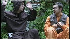 KurzbeschreibungNur der "weise Mann vom Berge" kann die GameStar wieder in ihre eigene Zeit bringen.InhaltsangabeKommunikationsoffizier Mikkl soll den "weisen Mann vom Berge" suchen und bildet ein Ein-Mann-Außenteam. Er beamt in eine regnerische Gebirgsgegend herunter. Leider ist auch der Todesstern im Mittelalter gelandet, doch momentan verhält er sich noch ruhig. Der Kommunikationsoffizier erklärt dem weisen Mann sein Problem. Dieser weiß eine Möglichkeit um zurückzukommen, aber "dazu ist sehr viel Energie nötig." Ein Blitz mit der Energie von 1,21 Gigawatt soll das Raumschiff wieder in seine Zeit befördern. Dazu braucht man nur einen Blitzfänger (einen Drachen) und einen Blitzschläger (eine Bratpfanne). Die GameStar kann allerdings nur getroffen werden, wenn sie sich an einer ganz bestimmten Position befindet - und dort erwartet sie schon der Todesstern. Jetzt fehlt nur noch ein Gewitter, doch da hat Mikkl schon eine Idee: Er schnappt sich ein Auto (wo kommt denn das plötzlich her?) und brettert damit ein wenig durch die Gegend, denn "immer wenn ich zu schnell fahre blitzt es." Der Todesstern lädt indessen seinen Laser, während der weise Mann vom Berge krampfhaft versucht den Drachen steigen zu lassen. Endlich gelingt es ihm einen Blitz einzufangen, den Mikkl mit dem "Blitzschläger" zur GameStar schickt, die genau im richtigen Moment wieder in ihrer Zeit landet, aber ohne Mikkl... ReviewDiese Episode ist mal wieder eine schöne Reminisi... Remizemmi... äh, Parodie auf "Zurück in die Zukunft". Sowohl die "Eins Punkt Einundzwanzig Gigawatt" als auch die Sache mit dem Blitz sprechen doch eine deutliche Sprache. Gut gelungen ist auch der "Weise Mann vom Berge", Markus Schwerdtel in Kutte wirkt wirklich sehr mönchig. Allerdings bezweifle ich, dass es im Mittelalter schon Brillen gab. Aber an solchen Nebensächlichkeiten soll man sich nicht stören, schließlich ist das hier Raumschiff GameStar, da ist alles erlaubt. Ansonsten eine recht amüsante Episode mit ordentlicher Story und ohne Durchhänger.