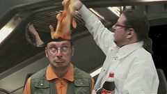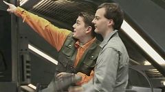 ErwähnenswertesDer erste Auftritt von Heiko "Kadett" Klinge.GoofsWar Darth Mopp nicht auf einen Millimeter geschrumpft worden? Hier ist er aber mindestens einen Zentimeter groß.Oh Gott, wo finde ich das "Wir werden alle sterben"?Beim Spielen mit seinem LEGO-Tie-Fighter sagt Captain Langer den Satz noch im Scherz, aber als er "Auf den Schirm!" befiehlt und der erste Offizier daraufhin einen grünen Regenschirm öffnet, sagt er den berühmt-berüchtigten Satz.KommentareToni über den ersten Auftritt von Kadett Klinge: "Wir geben den neuen Darstellern die Drehbücher vorher wohlweislich nicht zum Lesen und wir fangen auch mit den einfachen Szenen an."Jörg wirft ein: "Also um jetzt mal genau zu sein: Auch gestandene Redakteure bekommen das Drehbuch vorher nie zu sehen. Wir werden da einfach imemr hingestellt und müssen dann auf Zuruf einzelne Sätze sagen. da weiß ich dann erst ein paar Wochen später, wenn ich die efrtigen Filme sehe, in was ich da eigentlich mitgespielt habe. [...]" Zu Toni: "Glaubst du nicht, dass Schauspieler, oder zumindest Amateure, die wissen, was sie da tun, besser schauspielern?" |