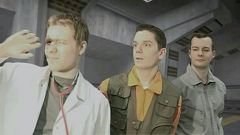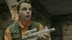 KurzbeschreibungDer Captain lässt seinen ersten Offizier gegen den gerade aufgetauchten Darth Vader antreten. Alleine hat er allerdings kaum eine Chance, zumal Vader ihm mit Hilfe von Telekinese die Waffe entwendet. Doch glücklicherweise taucht im rechten Moment Peter auf, der Vader mit dem weltbekannten Gummiknüppel K.O. schlägt.InhaltsangabeDie Crew steht fassungslos Darth Vader gegenüber. Kadett Klinge und der Doktor gehen schleunigst in Deckung, doch dem ersten Offizier gelingt es nicht, zu fliehen: Der Captain hält ihn zurück. Vader zückt sein Laserschwert und der Captain drückt Martin eine Laserkanone in die Hand. Doch der dunkle Lord entwendet sie ihm mit Hilfe seiner Telekinesefähigkeiten. Die Rettung naht schließlich von hinten: Sicherheitschef Peter schlägt Vader mit dem (weltbekannten) Gummiknüppel nieder. "Peter! Dich schickt der Himmel!" freut sich Martin. "Nein, eigentlich Admiral von Heimburg. Er und das neue Schiff erwarten euch schon sehnsüchtig." Doch bevor die Crew zur Basisstation fliegt, verlangt Martin noch eine Erklärung vom Captain, warum ausgerechnet er gegen Vader antreten sollte. Der Captain gesteht ihm, was dem Rest der Crew schon lange bekannt war: Martin ist ein Androide. Fassungslos öffnet Martin seinen Overall und sieht seine Innereien: Einen Intel I-486 SX. Dummerweise reißt der erste Offizier beim Betrachten seiner Innereien seinen Kühler raus und brennt durch. Doch auch der Doktor kann ihm nicht helfen: "Ich bin Arzt und kein Servicetechniker." Im Sterben liegend, bittet Martin darum, dass der Doktor ihm seinen letzten Wunsch erfüllt. Nachdem Martin sein Leben ausgehaucht hat, diagnostiziert der Bordarzt: "Er ist tot, Jim." Captain Langer schaut etwas verwundert drein: "Aber... ich... ich heiße gar nicht Jim." Der Doktor meint schulterzuckend: "Das habe ich ihm auch gesagt, Captain. Aber er wollte den Satz unbedingt noch einmal hören." Wenig später, in der GameStar-Basisstation, bedankt sich der Admiral für den tapferen Einsatz der Crew in der Erforschung neuer Spielewelten und überreicht ihnen "das nagelneue Raumschiff GameStar". ReviewIm Gegensatz zur vorigen Episode geht es diesmal wieder aufwärts - sowohl mit der Story als auch mit dem Humor. Die Story geht flott voran und hat keine Hänger (im Gegensatz zur etwas langatmigen Schiffe-Versenken-Szene in Episode 36) und die Idee, dass Martin ein Android ist und durchbrennt, ist auch ganz nett. Charles, Mikkl und Rüdi hatten damals keinen so schönen Abschied, sie waren einfach von einer Folge (bzw. einer Staffel) zur Anderen aus dem Blickfeld verschwunden. Gleich in dreierlei Hinsicht erinnert uns diese Episode zudem an die guten alten Zeiten: Erstens, der neuerliche Auftritt Darth Vaders (diesmal musste der arme Markus Schwerdtel unter die stickige Maske schlüpfen und durfte nicht mal selber sprechen) mit Tonis Synchronstimme, zweitens der MDK-Soundtrack, der in der ersten Staffel des Öfteren zu hören war und drittens Admiral von Heimburg, den wir zuletzt in Episode 3 zu Gesicht bekamen. Und die Outtakes zeigen uns mal wieder überaus deutlich, dass das Leben als Spieleredakteur offenbar doch irgendwelche Spuren hinterlassen muss.