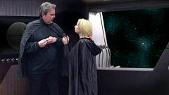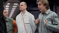 KurzbeschreibungWährend der Imperator vor den Fans flieht, versucht das GameStar-Außenteam, Darth Mopp davon zu überzeugen, dass sie nur harmlose Besucher sind...InhaltsangabeDarth Schmitz kommt aufgeregt zum Imperator, um ihm zu erklären, dass die Besucher des Tags des offenen Todessterns entflohen sind. Doch Erklärungen sind eigentlich überflüssig, er sieht sie schon herankommen. Kaum ist das GameStar-Außenteam an Bord des Todessterns angekommen, werden sie auch schon von Darth Mopp empfangen, der meint, die Drei sähen irgendwie wie die GameStar-Crew aus. Er fragt den Doktor, ob er nicht Captain Langer sei (wegen der getauschten Uniformen, versteht sich). Dieser meint, er sähe diesem gar nicht ähnlich. "Sie kennen doch den Langer: klein, schütteres Haar..." Trotz der Protestgesten des echten Captains fährt der Doktor mit seinen Beleidigungen fort. Doch nachdem Captain Langer abgestritten hat, der erste Offizier zu sein, bekommt auch Doktor Schmidt sein Fett weg, als Florian Stangl abstreitet, der Doktor zu sein: "Der Pfuscher? Ich, ich bin ehrbarer Arzt und nicht dieser irregeleitete Giftmischer." Darth Mopp ist überzeugt und verlässt die Drei, deren Laune verständlicherweise nicht mehr die beste ist. Nachdem er ein weiteres Mal vor den Autogrammjägern geflüchtet ist, wähnt er sich in Sicherheit, doch der schein trügt. Heimlich haben ihn die Verfolger umzingelt und verlangen nun lautstark nach einem Autogramm. Das GameStar-Außenteam ist sich uneinig. Captain Langer will den Reaktorraum des Todessterns sprengen, Doktor Schmidt die Geiseln retten. Doch Captain langer lässt sich nicht erweichen, auch als der Doktor versucht, ihm zu befehlen, die Unschuldigen zu retten - schließlich hat er die Uniform des Captains an. Der erste Offizier versucht, den Schlichter zu spielen und schlägt vor, dass er und der Captain den Todesstern in die Luft sprengen und der Doktor die Todesstern-Besucher rettet. Bis auf Letzteren sind alle einverstanden und Doktor Schmidt zieht, "undankbares Personal" murmelnd, von dannen. Darth Schmitz erzählt ihrem Kollegen, dass der Imperator außer sich vor Wut sei. Darth Mopp beruhigt sie. Er hat alle Besucher in die Fluchtkapsel gesperrt, die er gleich darauf abschießt. Auf dem Monitor entdecken die Beiden, dass drei Personen sich jedoch noch immer auf freiem Fuß befinden. ReviewChristian Schmidts insgesamt zehntes Drehbuch in der Serie gefällt mir besser als die vorhergehende Episode, trotzdem nicht wirklich eine Episode, die mich zu Begeisterungsstürmen verleitet hat. Zu dünn die Story, zu unwitzig die Witze. Trotzdem gibt es einige schöne Szenen, vor allem die, in denen die GameStar-Crew sich darum streitet, wer welche Mission hat und wer eigentlich der Captain ist. Leider wird auch dieses Mal wieder ein bisschen viel "Ohgottogottogott!" gesagt.