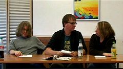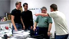 Kurzbeschreibung"Heute mit der Redaktionskonferenz, Redis im Stammlokal, Gollum Mick, einem Trainee-Casting und natürlich dem Drucker ganz am Ende."InhaltsangabeGunnar Lott ärgert sich darüber, dass die Komplettlösung für "World of Warcraft" (und das dauert) an ihm hängen geblieben ist, weil seine Kollegen sich erfolgreich davor drücken konnten: Heiko stirbt wie von Geisterhand, Petra erschießt sich, Markus erstickt und Mick kriegt einen Herzinfarkt. Während Gunnar der Magen knurrt, schlagen sich seine Kollegen im Stammlokal den Wanst voll - wo sich Michael Graf darüber beschwert, dass in seinem "Mafia-Salat" grüne Bohnen sind. Gunnar meint, der Mick könnte das eigentlich viel besser machen, da er in letzter Zeit viel besser schreieb als sonst. Kurz darauf erfahren wir auch, warum: Mick "Gollum" Schnelle hat Fabian Siegismund als Ghost-Trainee unter dem Tisch versteckt. Den muss er aber leider hergeben. Gunnar sitzt deutlich demotiviert vor dem PC und meint, eigentlich könnte das einer der Trainees machen - seit es das Trainee-Casting gibt, soll deren Qualität nämlich deutlich gestiegen sein. Wir erfahren auch, warum: Markus "Choleriker" Schwerdtel sitzt in der Jury (neben Petra und Christian) ekelt die nicht geeigneten Trainees mit seinen Wutausbrüchen ganz schnell wieder raus. Leider klappt das nicht mehr, als der Stanglnator sich vorstellt. Endlich hat Gunnar die Komplettlösung fertig. Er bittet Spori, den Ausdruck abzuholen, doch als er gerade am Drucker angekommen ist, schnappt sich eine Hand (die zu Michael Graf gehört) den Ausdruck, zerknüllt ihn und Spori muss unverrichteter Dinge wieder abziehen. ReviewDie erste Folge der neuen Redaktion-Soap hinterlässt gemischte Gefühle bei mir. Einige Gags zünden wirklich, so Markus' Wutausbrüche oder Christian unartikulierte Artikulationen. Besonders herrlich sein zotteliges Aussehen - sind die langen Haare also doch noch zu etwas gut. Leider war es das aber auch schon an guten Gags. Der Gag mit den grünen Bohnen ist eher bescheiden, und auch die Redaktionskonferenz, wo sich alle erfolgreich vor der "World of Warcraft"-Komplettlösung (was ja in sich schon ein Gag ist) drücken, wirkt irgendwie albern - ganz zu schweigen von Micks Gollumerei. Besonders enttäuscht war ich von Gunnar "Darth" Lott. In RSGS hat er wirklich gute schauspielerische Leistungen abgelegt, hier klingt er jedoch irgendwie gelangweilt. Das muss besser werden.