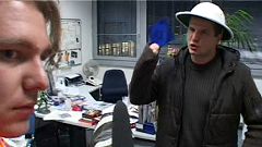 KurzbeschreibungDiesmal enthüllt Starreporter Christian Schmidt, warum es mit Raumschiff GameStar nicht weitergeht, befragt dabei Passanten und wagt sich in die Chefetage der GS-Redaktion...InhaltsangabeReporter Christian Schmidt von "Inquisy TV" will herausfinden, warum Raumschiff GameStar abgesetzt wurde. Zuvor jedoch wird gezeigt, wie Christian in einem Münchner Rückbaugebiet die Leute auf der Straße nach RSGS gefragt hat. Ein befragter Herr zum Beispiel mochte die Romanze des Captains mit der Ärztin (nur dass er Captain Picard meint, nicht Captain Langer), eine Frau aus dem hohen Norden spekuliert, dass der Captain der Vater vom Imperator sei, während ihr Freund meint, der Funker wäre dann die Mutter. Zwei irgendwie ähnlich aussehende Herren philosophieren über den Doktor, ein Herr will die (GameStar Tipps-)Bibel loswerden und ein Müllmann ist trotz des ähnlichen Anzugs kein RSGS-Fan. Schließlich betritt der Reporter die GameStar-Redaktion. Dort spielen sich im Flur tumultartige Szenen ab: Einer sitzt im Gang und spielt Gitarre, jemand fährt mit einem Mini-Scooter durch die Gegend, Fabian Siegismund zieht seine Schuhe aus, Markus Schwerdtel zerknüllt Papier und der Chefredakteur ärgert sich über die miesen RSGS-Drehbücher - die auch der Absetzungsgrund sind. Als Beispiel zeigt er die letzte Folge: Captain Lottt... äh, Langer befiehlt einen Kamikazeflug auf den Todesstern, der Imperator befiehlt das Gleiche. Mit Vollgas fliegen beide Schiffe aufeinander zu, verpassen sich aber leider, weil das All nun mal nicht zweidimensional ist. Der Chefredakteur empfiehlt dem Reporter, die neuen Drehbuchautoren ("die bringen gar nichts auf die Reihe") aufzusuchen, um sich selbst ein Bild von deren Qualitäten zu machen. Gesagt, getan. Drei uns von einer gewissen Trainee-Jury wohl bekannte Personen sitzen im fünften Stock und grübeln über neuen Ideen: Markus ist cholerisch, Petra flennt und Christian "Wuschelkopf" Schmidt "mag den net". Und alles, was sie an Ideen haben, ist ein Running-Gag, den der Captain in jeder Folge sagen soll. Auf die Frage, wie es denn nun mit RSGS weitergehe, schluchzt Petra: "Wir saßen da eine ganze Zeit lang um unsere Diskutierkerze rum und wollten diskutieren, aber niemand hatte Feuer." Inzwischen ist Redi Michael Graf wieder mal im Stammlokal und freut sich, dass die Blitzkrieg-Platte so schnell gekommen ist. Der Moderator ist immer noch nicht viel schlauer, und der seltsame bleichgesichtige Typ, dem er im Treppenhaus begegnet, kann ihm auch nicht viel weiterhelfen. Aber zumindest wissen wir jetzt, dass man Aktenkoffer nicht im Klo runterspülen kann. Der Chefredakteur ist verzweifelt: Das neue RSGS-Drehbuch taugt wieder nichts. Er bittet Spori, dem Reporter ein Exemplar auszudrucken. Ein verhängnisvoller Fehler. Zwar schafft Spori es diesmal, den Ausdruck aus dem Drucker zu holen, stolpert auf dem Rückweg aber über eine Schnur, fliegt hin und muss unverrichteten Ausdrucks wieder abziehen. ReviewWow, "Die Redaktion" hat sich echt gesteigert seit den letzten beiden Folgen. Diesmal zünden die Gags fast alle und es gibt keine Stelle mehr, bei der man am liebsten abschalten würde. Besonders gefallen hat mir die Szene, in der die "Passanten" befragt wurden, das erinnerte im positivsten Sinne an die besten Zeiten der "Wochenshow", das schönste war der Rohr-Witz. Mehr davon - obwohl, hinterher darf "Die Redaktion" nur noch auf die 18er-DVD kommen. Na, mir ja egal, ich bin sowieso volljährig :). Von der Tatsache, dass jetzt nicht mehr so viel in der Blue-Box gedreht wird, profitieren nicht nur die Redakteure, die jetzt endlich mal an die frische Luft kommen, sondern auch die Optik: Da die Kamera nicht mehr starr auf eine Stelle gerichtet sein muss, wirkt das ganze viel dynamischer und die Szene, in der der Reporter die durchgeknallte Redaktion betritt, dürfte eine der längsten Kamerafahrten sein, die man jemals auf einer GameStar-CD/-DVD gesehen hat. Und es ist auch eine der witzigsten: Was man da alles sieht, wenn man mal den Hintergrund beobachtet. Auch die RSGS-Szene war irgendwie witzig - vor allem mit Gunnar Lott als Captain Langer. Wäre schön, wenn man solche Mini-Episoden künftig öfters in "Die Redaktion" einflechtet. Und last but not least: Die ganzen kleinen Insider-Gags haben mir ebenfalls gefallen: Die Müllmann-Uniform, Christian und Christian, die sich über die Gesinnung des Doktors streiten (siehe Audio-Kommentar der zweiten RSGS-DVD-Edition), der merkwürdige Mann im Anzug aus "Half-Life ²" und die drei Drehbuchautoren, die irgendwie an die Jury aus der ersten Folge von "Die Redaktion" erinnern. So, damit ich das Ganze jetzt nicht nur über den Klee lobe und mir keiner vorwerfen kann, parteiisch zu sein, gibt's doch noch einen kleinen Kritikpunkt: Den Gag des Redi im Stammlokal fand ich zwar ganz nett, mehr aber auch nicht. Ha! Jetzt habe ich's den Drehbuchautoren aber gezeigt *g*