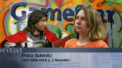 KurzbeschreibungDas Magazin "Brontal" berichtet über gefährliche Gewaltspiele und befragt dazu Branchenexperten und die Jugend. Natürlich alles streng seriös und unparteiisch.InhaltsangabeNach einer Einführung mit Szenen aus "Doom 3" ("Metzle unbewaffnete Unschuldige nieder, indem du kleine Tiere nach ihnen wirfst") und "World of Warcraft" ("Es gibt nur ein Ziel: plündern, ausrotten, Schwertvergleich") kommt ein "Gewaltbereiter Spieler" zu Wort, der über seine Metzelorgien berichtet - die aber offenbar nichts mit Computerspielen zu tun haben, denn in der Hinsicht hat er nur Tetris-Erfahrungen. Ein anderer Spieler, den man nur von hinten sieht, gibt so erschütternde Kommentare wie "Ey lol, kotzt mich das an, ey!" und "Boah, Alter, ey!" von sich - ein klares Indiz für die schädliche Wirkung von Spielen. Ein "gewaltbereiter Wissenschaftler" kommt zu Wort - natürlich ungekürzt und ungeschnitten - und erklärt, dass wissenschaftliche Studien erwiesen haben, wie gefährlich Gewaltspiele sind. Auch ein Industrievertreter kommt zu Wort, der erklärt, dass nur noch Blut und Morde produziert werden - also, irgendwie jedenfalls. Szenen von einer LAN-Party zeigen, dass sich vor allem Jugendliche (also in diesem Fall Leute unter 50) auf diesen Veranstaltungen abmetzeln. Auch die Altersfreigabe wird nur selten kontrolliert. So zeigen Aufnahmen mit der versteckten Kamera, dass Kinder in einem Münchner Gewaltspielegeschäft sogar Spiele ohne Altersfreigabe bekommen können. Skandal!!! Auch das verzerrte Frauenbild in Spielen wird untersucht. So kommt Branchenexpertin Petra Schmitz zu dem Schluss: "Ääääh..." Auch die Politik kommt zu Wort. So erklärt Innenminister Schwerdtel, dass Haartrockner staatszersetzend und Gewalt verherrlichend seien - bis ihm einer verrät, dass es um Computerspiele geht (die natürlich ebenfalls staatszersetzend und Gewalt verherrlichend sind). Doch die Politik tut etwas. Künftig sollen Polizei und Müllabfuhr Besitzer Gewalt verherrlichender Computerspiele schon beim ersten Verdacht niederschießen dürfen. Was fehlt noch? Richtig, der Drucker ganz am Ende. Außenreporter Marku Spormann bekommt in einem Münchner Einkaufszentrum Probleme mit gewaltbereiten Computerspielern. ReviewUm es gleich vorweg zu nehmen: Mit dieser Folge haben sich die Drehbuchautoren Christian Schmidt und Michael Graf selbst übertroffen, ganz zu verschweigen von Regisseur Toni Schwaiger und den zahlreichen Darstellern. Die Episode ist eine äußerst gelungene Parodie auf das ZDF-Magazin "Frontal 21", das auf äußerst unseriöse und vor allem sehr subjektive Art und Weise behauptet, Computerspiele würden aus Kindern und Jugendlichen gewaltbereite Mörder und Amokläufer machen. Diese Folge von "Die Redaktion" zeigt - natürlich völlig unauffällig - wie man mit geschickten Schnitten, Verdrehung von Tatsachen oder bestechlichen Haartrocknern... äh, Politikern seine Meinung durchboxen und vielleicht auch die Zuschauer beeinflussen kann. Die Gags in dieser Episode zünden fast alle (lediglich Heiko Klinge grimassiert für meinen Geschmack etwas zu übertrieben) und es gibt keine Langeweile oder Durchhänger. Dass die einzelnen Szenen ohne allzu engen Zusammenhang zusammengeschnitten wurden, stört bei dieser Folge überhaupt nicht, denn das unterstützt nur den Eindruck eines politischen Magazins, und es gibt ja das gemeinsame Grundthema, das sich durch alle Passagen zieht. Alles in allem also uneingeschränkt empfehlenswert. Was war noch mal "Raumschiff GameStar"?