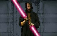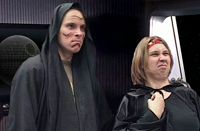 Gespielt von Jörg Spormann. Bei Darth Mopp handelt es sich ursprünglich um den leicht unterbelichteten Hausmeister des Todessterns. Da der Imperator aber mehr Personal fürs Grobe braucht und gerade niemand anderen zur Hand hat, muss Mopp eben als Handlager herhalten. Sein Markenzeichen sind das schwarze Cape, die Schminke und sein Doppellichtschwert (als Parodie auf Darth Maul aus "Star Wars: Episode I"). Mopps erste Aktion in seinem neuen Posten: Er lockt die GameStar-Crew in eine Falle auf Alpha Centauri, indem er einen falschen Hilferuf aussendet. Zunächst scheint sein Plan, die Crew in eine "Rundenzeitfalle" zu locken und alle Spielstände zu löschen zu funktionieren. Schließlich scheitert Mopp aber doch - Hexeditor sei Dank (Ep. 14). Auf Naboo greift Darth Mopp die GameStars an, um sie aufzuhalten, doch der Laserpistole von Captain Langer hat er nicht viel entgegenzusetzen und zieht es deshalb vor, die Flucht zu ergreifen (Ep. 15). Dass Darth Mopp, wie eigentlich die gesamte Todesstern-Crew, eine Vorliebe für Kaffee hat ist klar. Vor allem im Verschütten ist garantiert keiner besser als er... (Ep. 16) Beim Eindringen der GameStar-Crew in den Todesstern, wo sie den Reaktor sabotiert, bekommt Mopp den Auftrag, die Störenfriede zu fangen. Er erwischt sie auch, doch als er den Eindringlingen dann mit seinem Doppellaserschwert den Rest geben will, verkeilt sich dieses zu Mopps Leidwesen im Gang - und das, obwohl es sich doch um einen Taiwanimport Marke "Gangbreit" handelt... (Ep. 18) Dass er nicht der Schlauste ist, stellt Mopp einmal mehr unter Beweis, als er die von Darth Lott in eine Bombe verwandelte Packung des Todesstern-Hausmarken-Kaffees "Imperiale Dröhnung" (die die GameStar-Crew ja zurück auf den Todesstern gebeamt hat) freudestrahlend auf die Kommandobrücke bringt. Noch bevor der Todesstern dann einmal mehr durch eine Explosion erschüttert wird, bekommt Darth Mopp vom Imperator die Quittung für seine Dummheit - er wird gefeuert (Ep. 19). Da die Arbeit für den Imperator aber scheinbar ein echter Traumjob ist (oder weil Mopp sonst keine andere Stelle bekommt), versucht er sich bei seinem Ex-Chef wieder einzuschmeicheln, indem er mit einem Tie-Fighter einen Kamikazeangriff auf die GameStar startet (auch wenn er danach ja gar nicht mehr lebt, was ihm aber erst etwas zu spät einfällt...). Statt in sein eigentliches Ziel kracht Mopp jedoch dank eines Ausweichmanövers der GameStar direkt in die ohnehin schon demolierte Voyager... (Ep. 20) Mit mehr Glück als Verstand hat er seine Bruchlandung überlebt und versucht, wo er schon mal dort ist, mit der Voyager die GameStar zu vernichten - schließlich kann das Schiff doch noch drehen und schießen. Die Voyager-Kapitänin an Bord der GameStar hält ihn davon jedoch per telekinetischen Ohrfeigen ab. Schließlich stülpt sie ihm - ebenfalls per Telekinese - einen Papierkorb über den Kopf, um ihn ruhig zu stellen, bis die GameStars ihn rüberbeamen können. Mopp lässt jedoch nicht locker und drückt in der Dunkelheit des Eimers alle Knöpfe, die er erreichen kann. Er wird zwar letztlich von der GameStar-Crew auf ihr Schiff teleportiert, hat bei dem wilden Knopfdrücken jedoch versehentlich die Selbstzerstörung der Voyager aktiviert und verschafft der GameStar, die in der Not zum ersten Mal den (scheinbar defekten) Umkehrschub einsetzt, auf diese Weise eine Reise ins Mittelalter (Ep. 21). Als der Imperator beim Umwerfen einer Kaffeetasse einsieht, dass Darth Mopp für die Säuberung des Todessterns unverzichtbar ist, erklärt er sich einverstanden, den vom Imperium gefangenen Mikkl gegen Mopp einzutauschen. Da aber neben Mikkl auch Darth Mopp entkommen kann, droht der Deal zu platzen (Ep. 23). Während die GameStars und der Imperator fortwährend Gerümpel auf das gegnerische Schiff beamen und behaupten, sich "verbeamt" zu haben (da ja niemand die Geisel zur Hand hat), schafft es Mopp, auf die Brücke zu gelangen, sich in den Beamstrahl zu stellen und so zurück zum Todesstern zu kommen (Ep. 24). Um die Bombe zu entschärfen, die Darth Lott Mikkl eingepflanzt hat und mitsamt dem Kommunikationsoffizier von den GameStars auf den Todesstern zurückgebeamt wurde ("Wir haben doch noch einen Funker in Reserve!") wird Mopp auf genau einen Millimeter geschrumpft und in Mikkls Ohr gesetzt. Nachdem er sich kurz in Mikkls Gehirn eingenistet und ihm ein paar Ohrfeigen verpasst hat, macht er sich auf den Weg zur Bombe, wo er nach einer hitzigen Diskussion mit Darth Lott und dem Imperator ("Okay. Ich ziehe jetzt das Kabel raus, auf dem 'Sofort sprengen' steht.") in letzter Sekunde die Bombe entschärfen kann. Als er Mikkl, der noch immer einen Verstärker in der Hand hält, noch eine letzte Ohrfeige verpassen will, gibt es einen Kurzschluss und die Bombe geht doch noch hoch (Ep. 26). Immer noch im Gehirn von Mikkl sorgt Mopp auf der GameStar dafür, dass der Kommunikationsoffizier zu den anderen ziemlich fies ist (Ep. 28). Da die GameStars das jedoch nicht dulden können, rufen sie den Doktor, um der Sache auf den Grund zu gehen. Die genervte Vertretung für Dr. Chris holt Darth Mopp schließlich aus Mikkls Kopf raus (was man mit einer Säge nicht so alles machen kann), worauf der Scherge des Imperators in einem Lego-Tie-Fighter entkommen kann. Als er auf dem (noch nicht ganz fertigen) Todessternneubau einschlägt und wieder zu normaler Größe gewachsen ist, wird er von Darth Lott sogleich mit der Aufgabe betraut, den Todesstern "mal eben fertig" zu machen (Ep. 29). Nach einer mehr oder weniger langen Auszeit taucht Mopp erst sechs Episoden später wieder auf, wo er in Hogwarts beim Warten auf den Anschlussbeam zur GameStar-Basisstation auf die Mannschaft trifft. Gerade möchte er zum Angriff übergehen, als der von hinten heranfliegende Kadett Klinge ihn mit seinem Zauberbesen einfach aus dem Weg rammt (Ep. 35). (von Matthias Helm) |