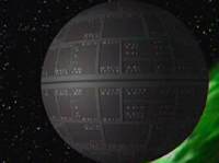 Die Heimat von Darth Vader. Der Todesstern ist ein riesiges, düsteres, rundes Raumschiff mit mächtigen