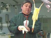 2). Nach einem kurzen Abstecher als Pilot kehrt er erneut ins Geflügeltestergewerbe zurück (Ep. 5). [Anm.: Das Gummihuhn ist eine Anspielung auf "Monkey Island".] |