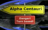 Trotz des Warnhinweises "Rundenbasiert" fliegt die GameStar-Crew nach Alpha Centauri, um einem falschen Notruf nachzugehen (Ep. 14). |