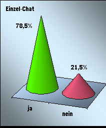 Das Statement „Chat-Freundschaften sind oberflächlicher“ beantwortete ca. die Hälfte zustimmend. Aber immerhin etwa 24% meinen, dass das nicht so sei. Diese Personen haben, so vermute ich, ihre länger währenden Chatfreundschaften, mit denen sie sich intensiver, vielleicht per Einzel-Chat, austauschen. |