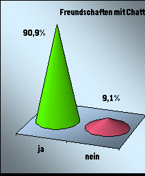 Die Frage, ob schon Freundschaften mit anderen Chattern geschlossen wurden, beantworteten 91,1% der weiblichen und 90,3% der männlichen Teilnehmer mit Ja. |
